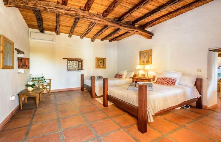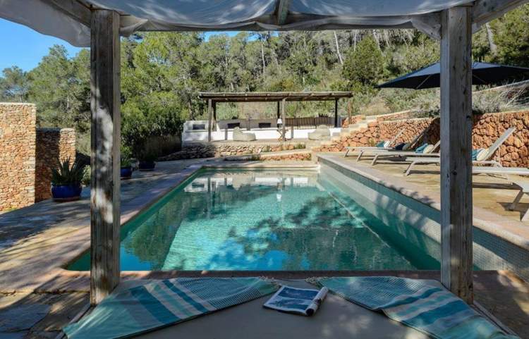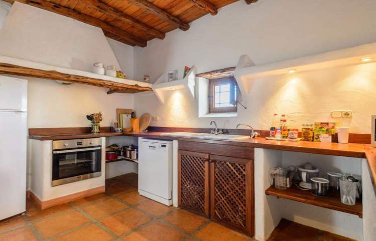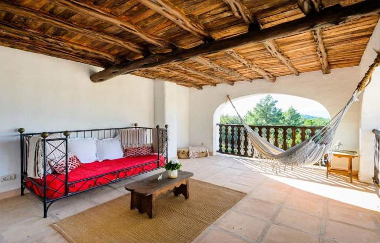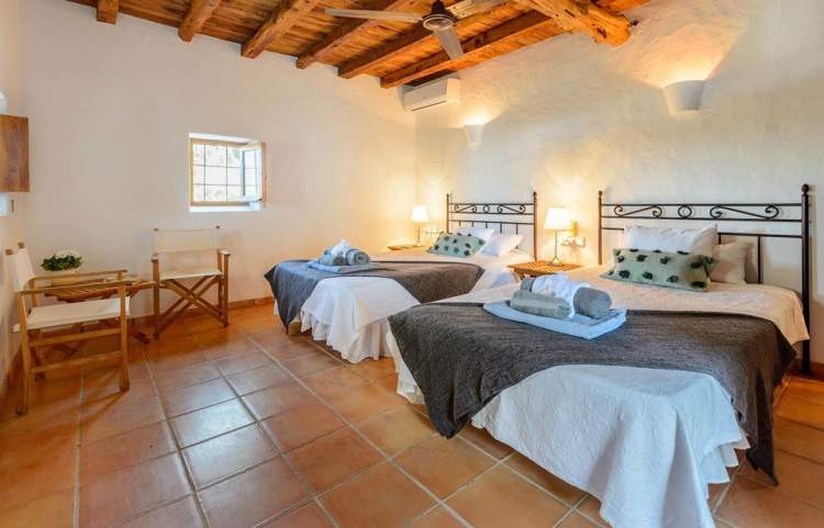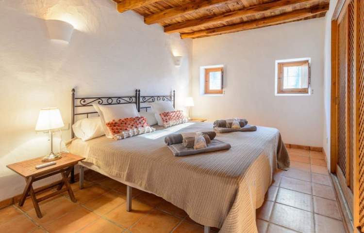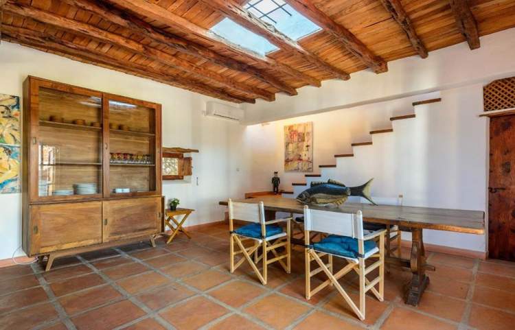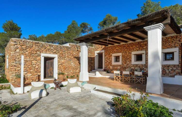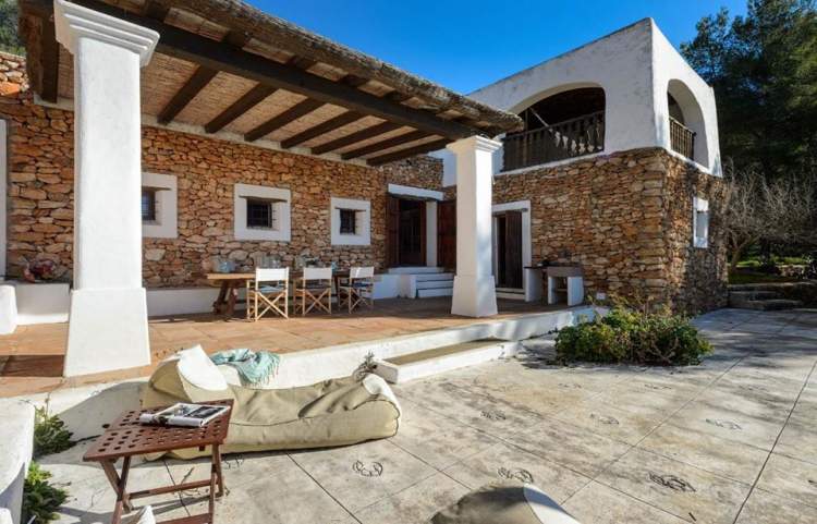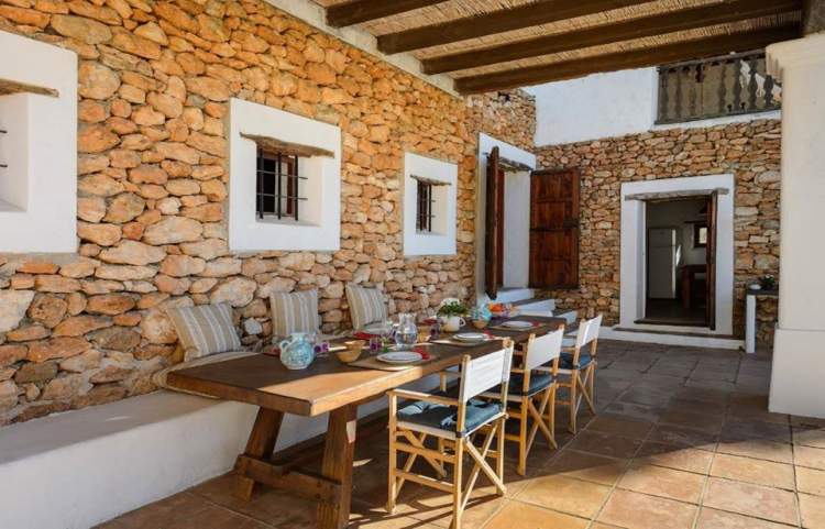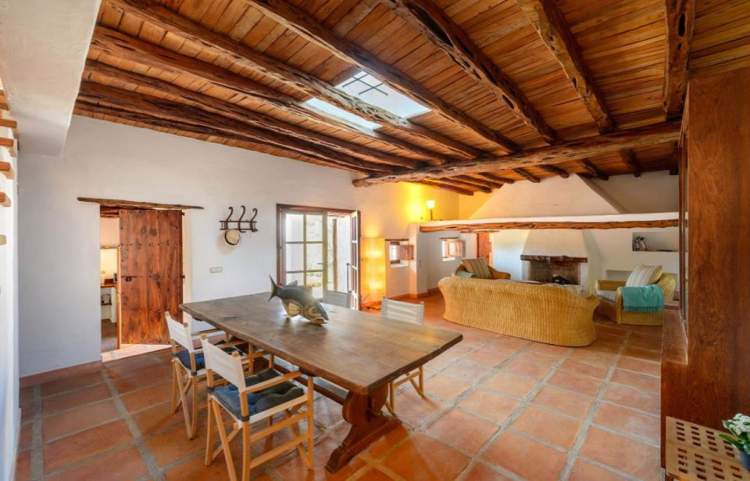 Una finca rural de estilo ibicenco situada en una zona tranquila rodeada de árboles frutales y pinos, cada uno con su propio espacio natural e intimidad. Un gran patio te espera en la entrada de la villa, que está decorada con una gran mesa de madera para comer al aire libre y zonas de relax. Desde el patio accedes al salón comedor, la cocina y 2 de los dormitorios.