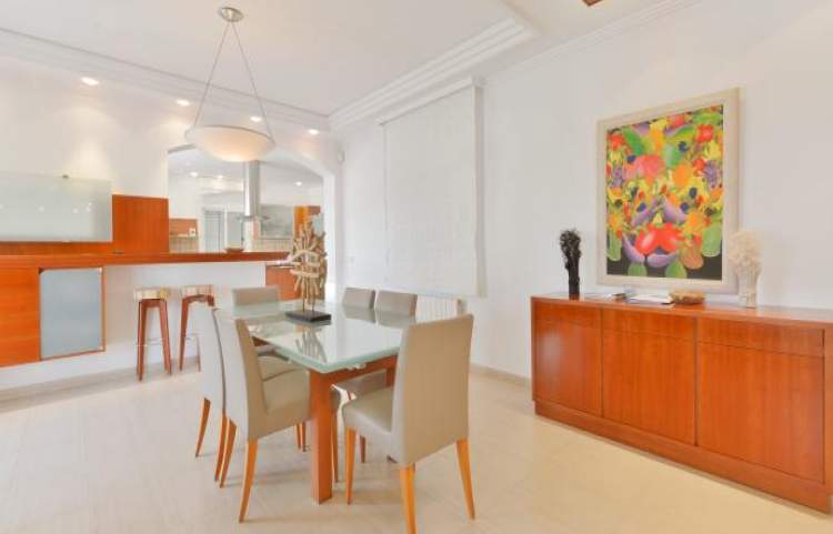 Hermosa propiedad, ubicada a pocos kilómetros de la ciudad de Ibiza, completamente independiente y vallada. En el área del jardín hay una barbacoa y una piscina (8x8 m) dividida en dos zonas, la parte para niños pequeños se convirtió en un jacuzzi y la otra parte separada por una fuente. Dispone de zona de aparcamiento y un aseo exterior. En la entrada de la planta baja hay una gran cocina moderna con acceso directo al jardín y un gran comedor que conduce a una espaciosa sala de estar con fuego.