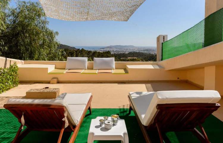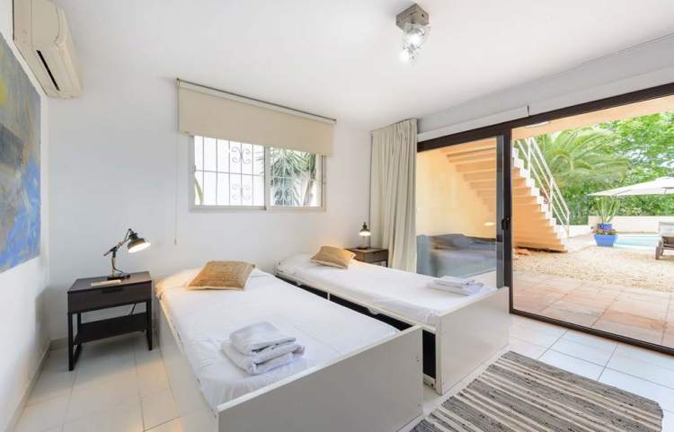 LT2014047544 Capacidad máxima: 8 personas CARACTERÍSTICAS • 4 dormitorios - 8 plazas • 5 baños (4 en suite) • 1 aseo • Área: Can Furnet • Piscina privada • Mar y amplificador; Mountain View EQUIPAMIENTO • A / C • TV en cada habitación • Sistema de sonido • Internet WI-FI • Sistema de alarma • Estacionamiento privado • Cancha de tenis comunitaria DISTANCIAS • Playa: 4 Km • Aeropuerto: 13 Km • Puerto de Ibiza: 6 Km • Santa Eulalia : 8 Km • San Antonio: 20 Km • Sant Joan: 20 Km • San Josep: 20 Km