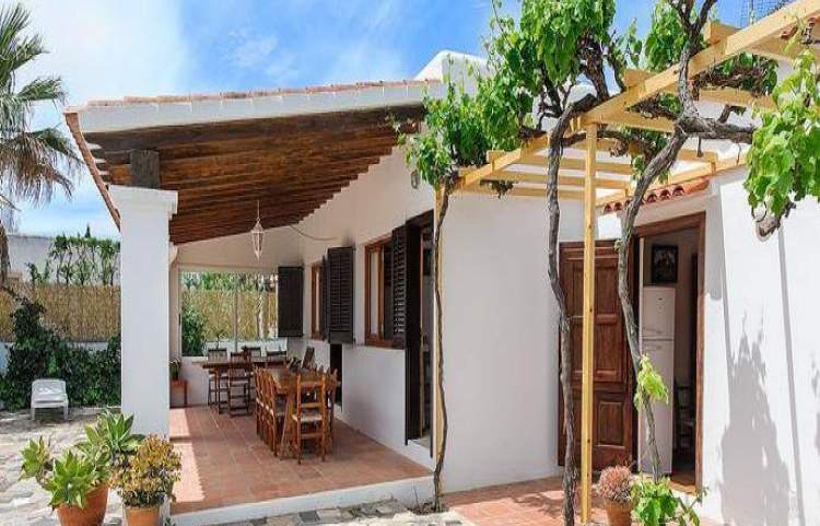 Esta propiedad en alquiler en Ibiza es para 8 personas, a las afueras de Sta. Gertrudis se encuentra en una parcela de 11.200 m2 con vistas al campo. Puedes caminar hasta el pueblo, esto tomaría solo entre 5 y 10 minutos hasta la plaza central. Tienes casi todo lo que necesitas allí. La casa es simple, pero práctica, a buen precio, una piscina con una valla alrededor y una puerta, esto puede cerrarse para niños pequeños.