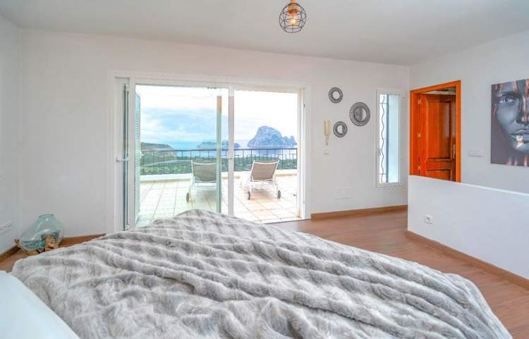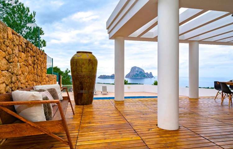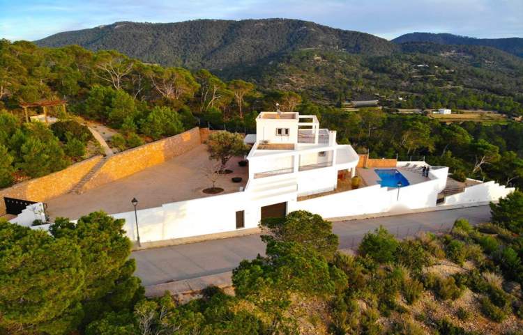 Con una superficie construida de 345 m2, se encuentra en la cima de la colina en Cala Carbo, en el parque natural de Cala dHort. Este es un lugar muy tranquilo y encantador, con una hermosa vista panorámica mágica del Mediterráneo, Es Vedra y Cala Vadella. La villa cuenta con varias terrazas, salones y mesas de comedor para disfrutar de las puestas de sol perfectas. Es la villa más grande ubicada en la colina de Cala Carbo, con una amplia zona exterior.