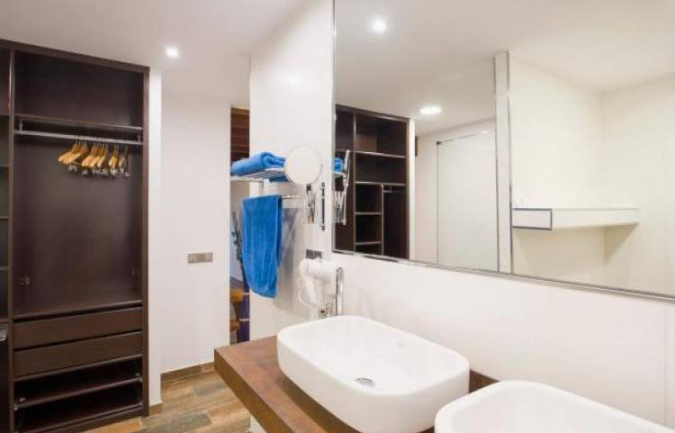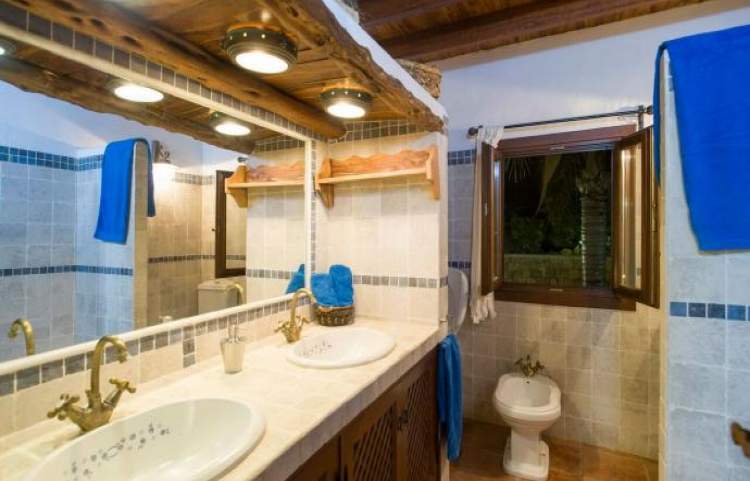 La villa cuenta con 2 master suites, 2 baños con ducha de hidromasaje y una terraza cubierta (camas de 150 x 200). 4 habitaciones dobles con dos baños compartidos, uno con bañera y otro con hidromasaje. La villa consta de un gran salón / comedor en 2 niveles con chimenea y una gran terraza cubierta. Grandes canales de TV por satélite y equipo de música disponible también. En el nivel inferior de la casa hay un gimnasio, una sala de juegos con ping-pong, billar, futbolín y juegos de mesa.