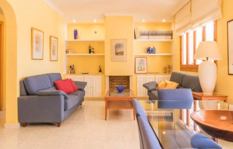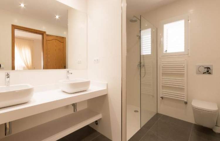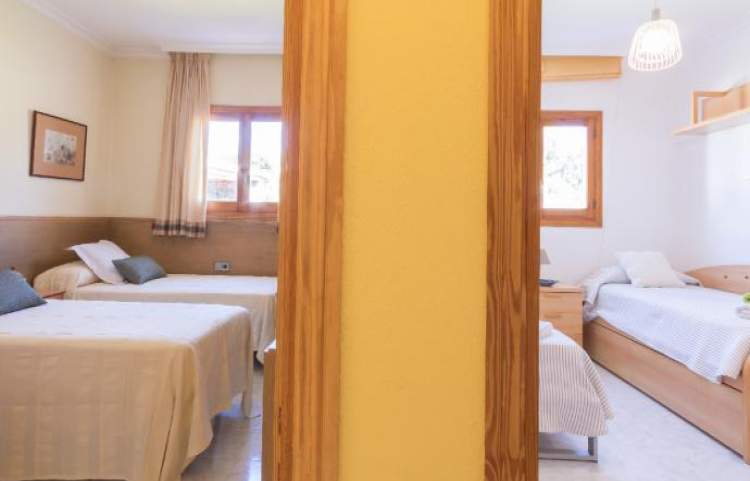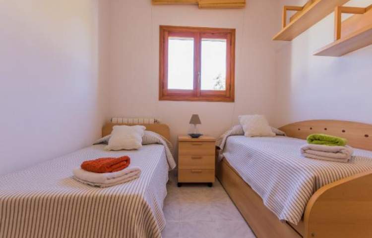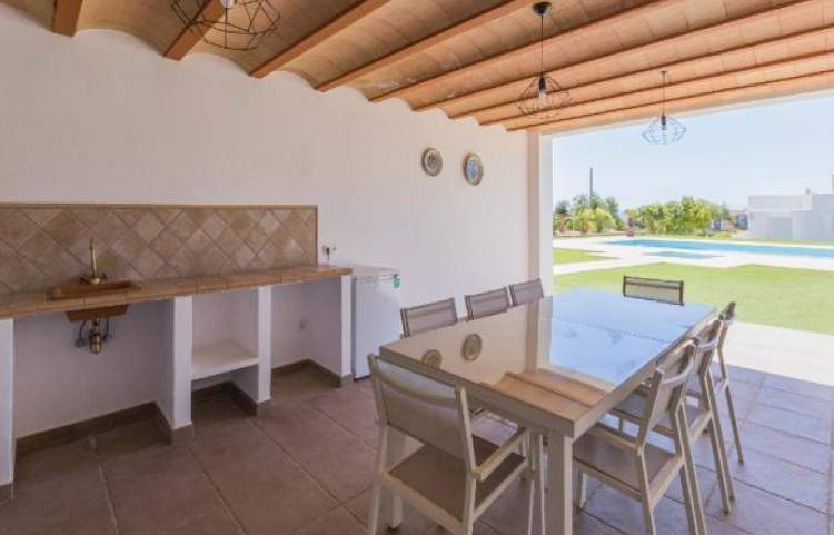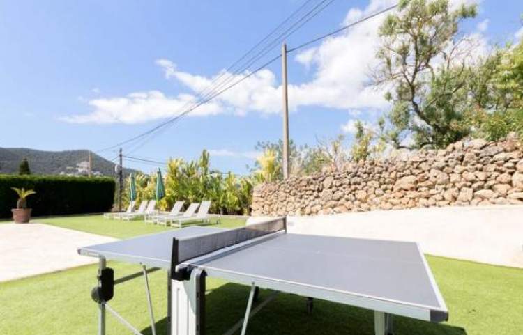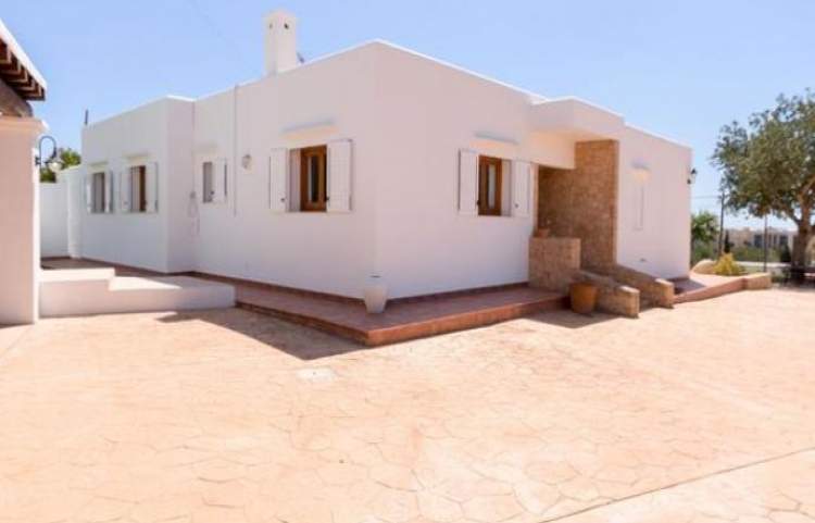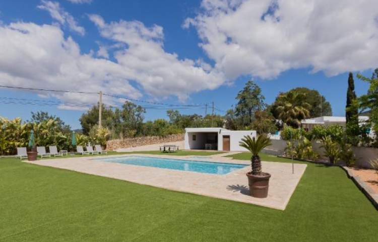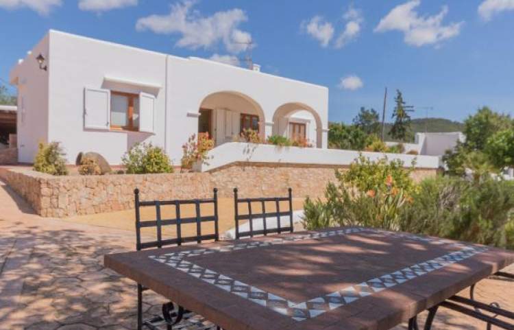 Esta es una casa de 3 dormitorios al este en la isla de Ibiza, la casa tiene capacidad para 6 a 8 personas. La parcela mide 4.500 metros cuadrados con una piscina, que mide 12 metros x 5 metros. Hay una bañera de hidromasaje estilo jacuzzi (agua fría). Un comedor cubierto tiene una barbacoa y un fregadero, ideal para cenar al aire libre.