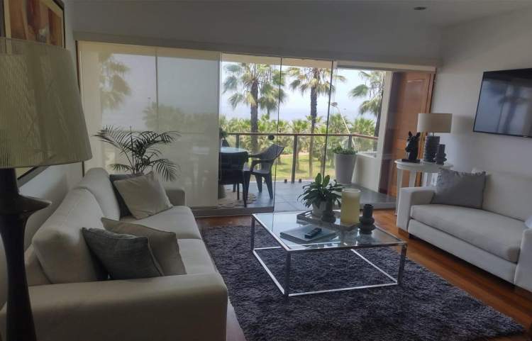 ¡Hermoso departamento con balcón y una espectacular vista al mar en una ubicación inmejorable! Cuenta con dos dormitorios, tres baños, sala comedor, cocina lavandería, área de servicio y cochera. El alquiler mensual es de $1,599. Para más información, puedes contactar a Jacky Arroyo al siguiente número: 964275580. - .955543743. - .925803326. Tenemos disponibilidad de este y otros departamentos en alquiler, amoblados y sin amoblar, con electrodomésticos incluidos.